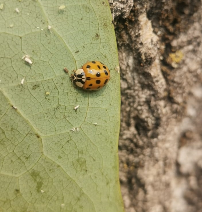Soluzione: Adalia bipunctata. è una coccinella tipica dei nostri habitat, che si nutre attivamente delle principali specie di afidi presenti sulle piante arboree, arbustive ed erbacee.